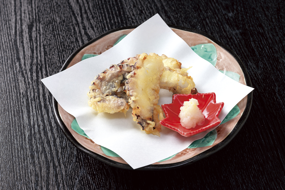 穴子をふっくら、さっくりと揚げました。カリカリした骨煎餅の食感も楽しめる一品。