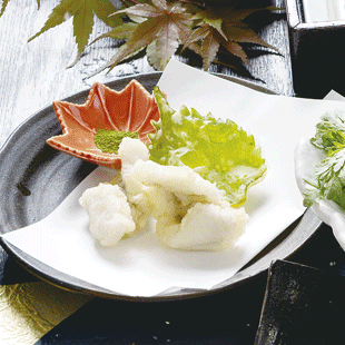 穴子をふっくら、さっくりと揚げました。カリカリした骨煎餅の食感も楽しめる一品。