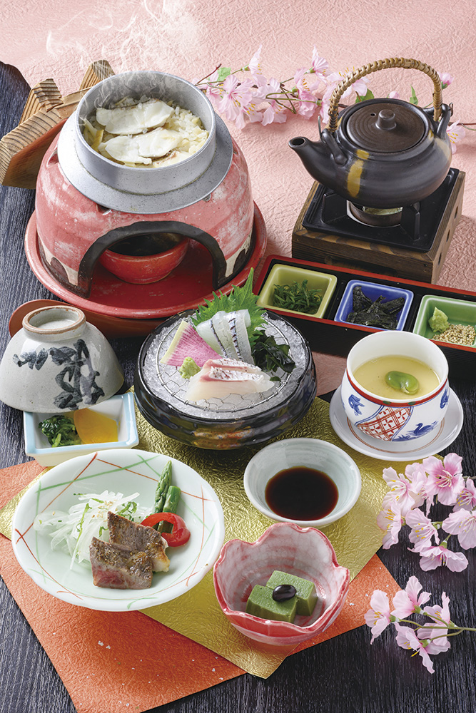 春の訪れを感じる鯛釜飯を中心に、旬の食材を取り入れた彩り豊かな料理を揃えた、季節限定の特別御膳です。