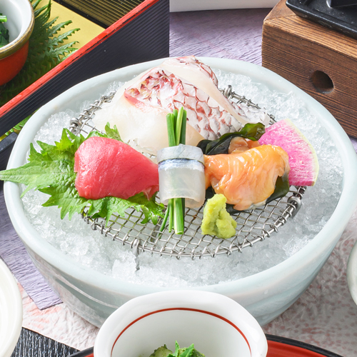 朝仕入れた新鮮な鮮魚を草津港より直送した刺身定食です。